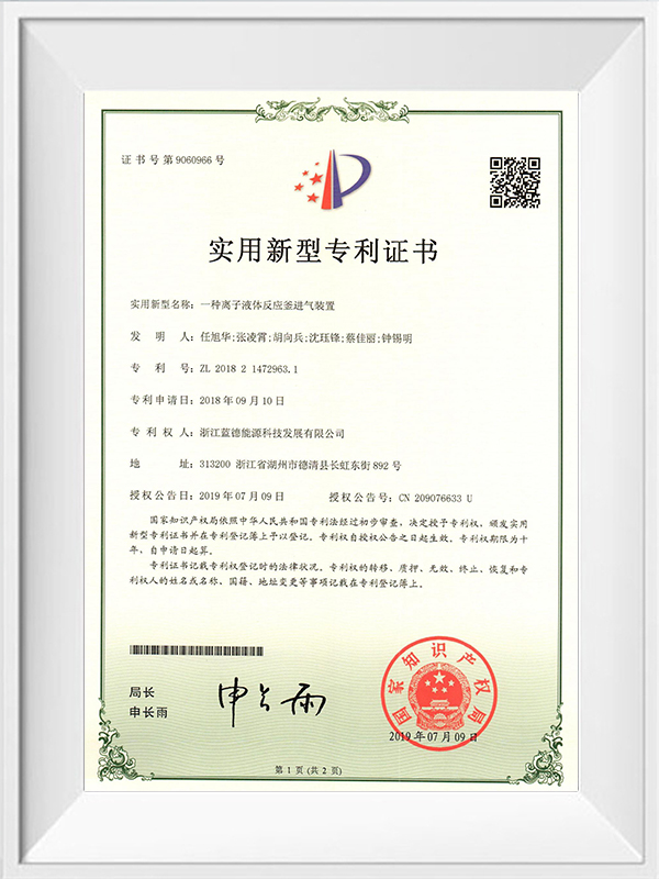 Certificado de novo produto industrial da província de Zhejiang