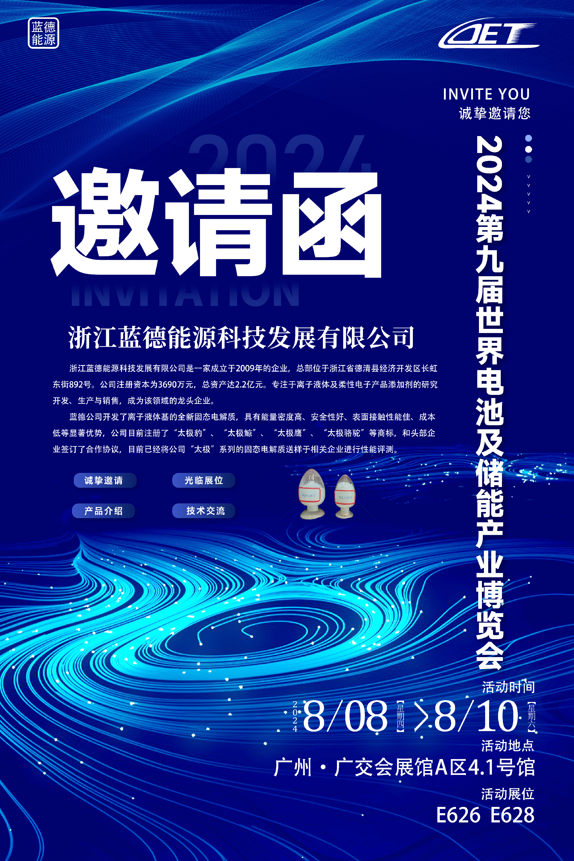 A Ldet Technology participará da 9ª Expo Mundial da Indústria de Baterias e Armazenamento de Energia de Guangzhou, de 8 a 10 de agosto. Damos as boas-vindas a empresas e especialistas na indústria de baterias para visitar nosso estande para trocar idéias sobre produtos e tecnologias!